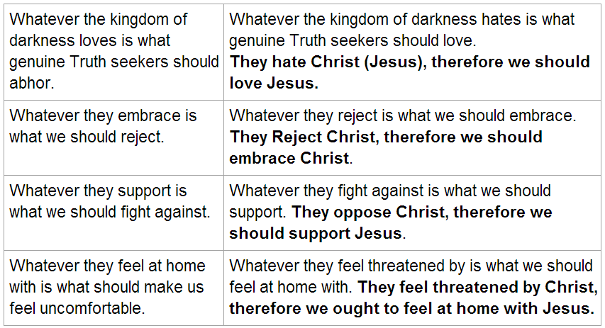 Whatever the Dark side hates is what we should love. These Satanists obviously hate Christ, and they want us to deny Christ.
